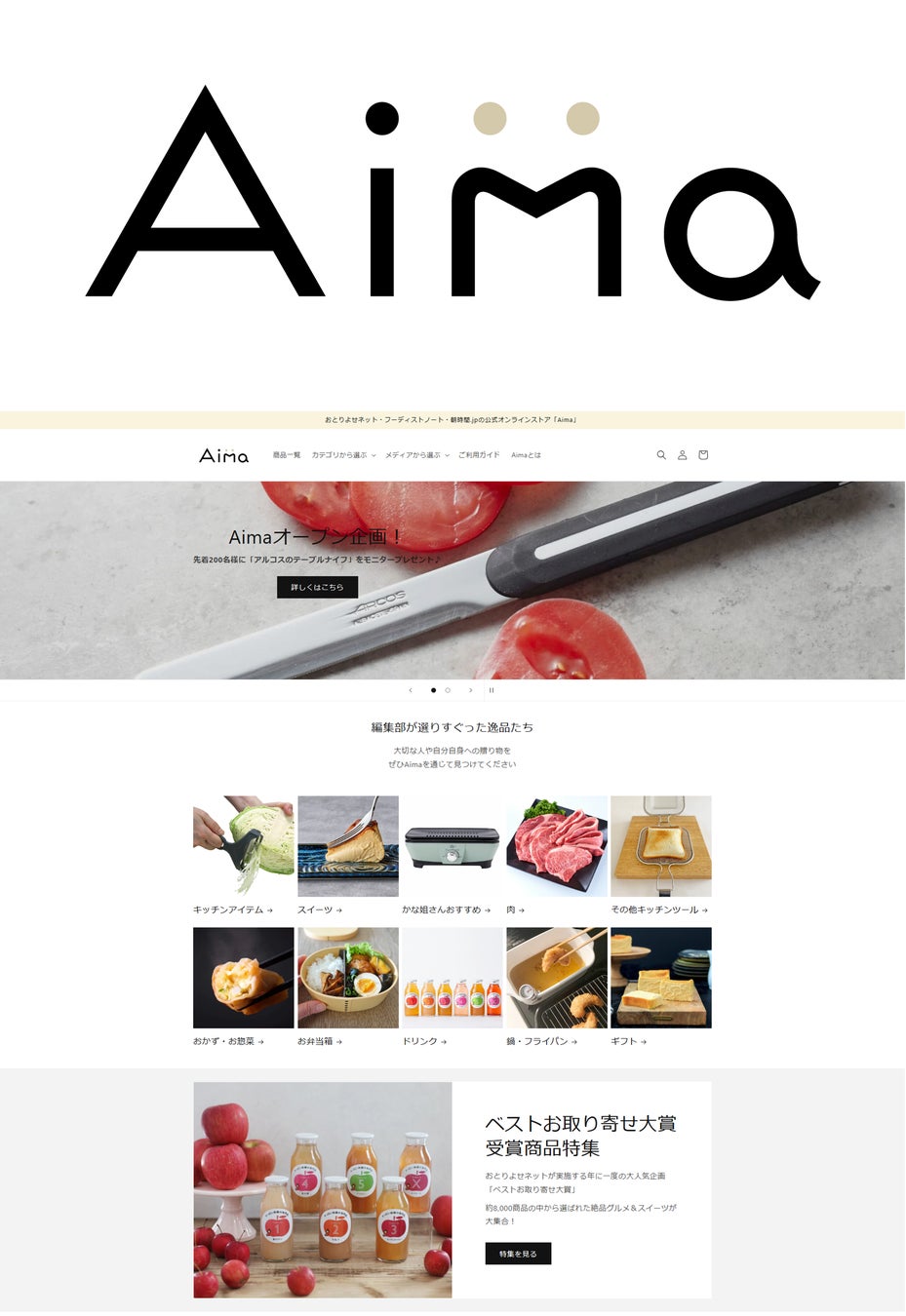 おとりよせネット、フーディストノート、朝時間.jpなどのライフスタイルメディアを運営するアイランド株式会社(本社:東京都渋谷区、代表取締役:粟飯原理咲 https://www.ai-land.co.jp/ ) は、各編集部が選りすぐったキッチン雑貨やお取り寄せグルメなどを販売するオンラインストア「Aima(アイマ)」を4月16日正式オープンいたしました。