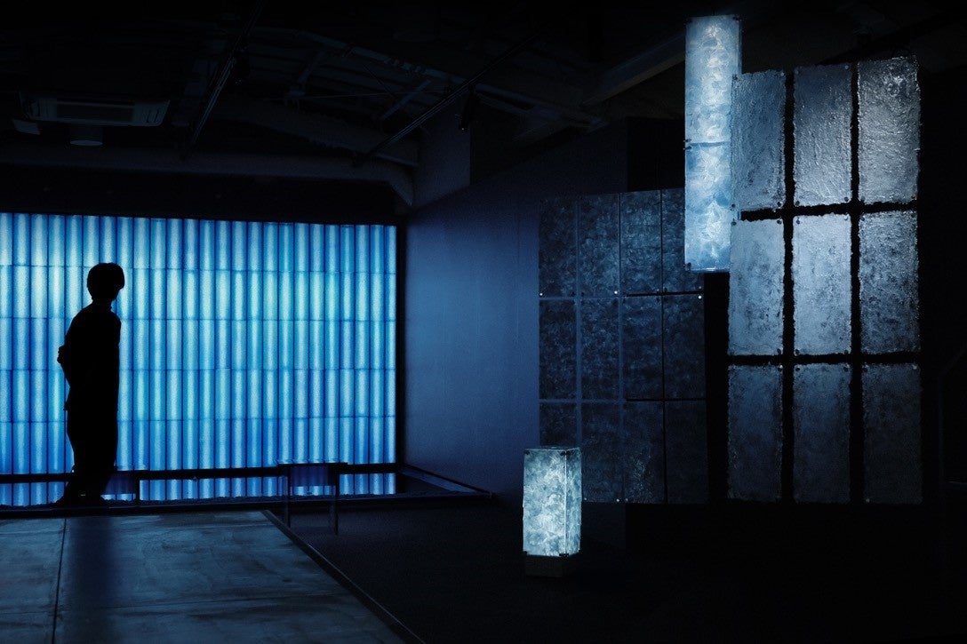 YAMAGIWAの技術協力および器具提供のご協賛によって実現した緻密なライティング計画により、素材の透明性と光が織りなす美しさと機能性が際立ち、本作品は展示に奥行きと広がりをもたらし、鑑賞者に静かで味わい深い空間体験を提供します。