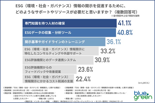 ESG情報開示の促進においては、人的リソースの強化やツールの整備、ガイドラインに関する教育といった多方面からの支援が求められていることが明らかになりました。