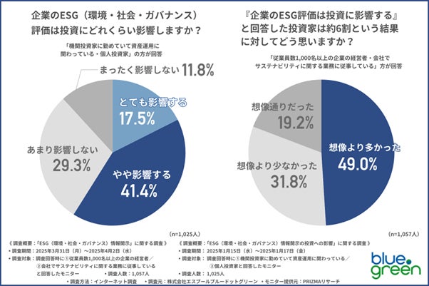 株式会社エスプールブルードットグリーン(本社:東京都千代田区、取締役社長:八林 公平、以下「エスプールブルードットグリーン」)は、①従業員数1,000名以上の企業の経営者、②企業でサステナビリティ業務に従事している方を対象に、「ESG(環境・社会・ガバナンス)情報開示」に関する調査を実施しました。