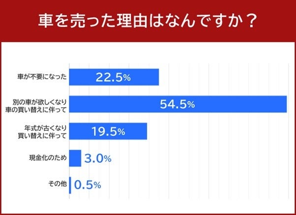 車を売った理由を尋ねると、54.5%の方が「別の車が欲しくなり車の買い替えに伴って」と回答しました。