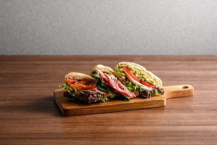 ・3種のフォカッチャ(ローストビーフ、スモークサーモン&クリームチーズ、バジルチキン)