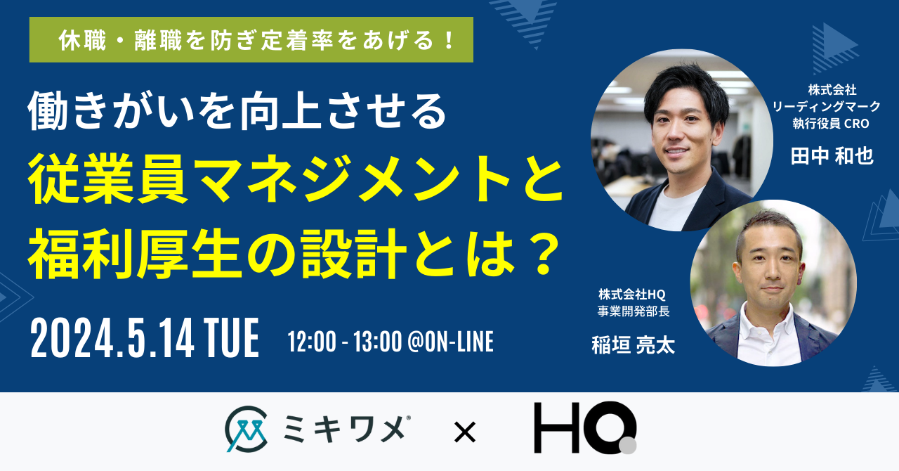 ミキワメ、5/14に株式会社HQと「働きがいの向上」をテーマにオンラインセミナーを開催