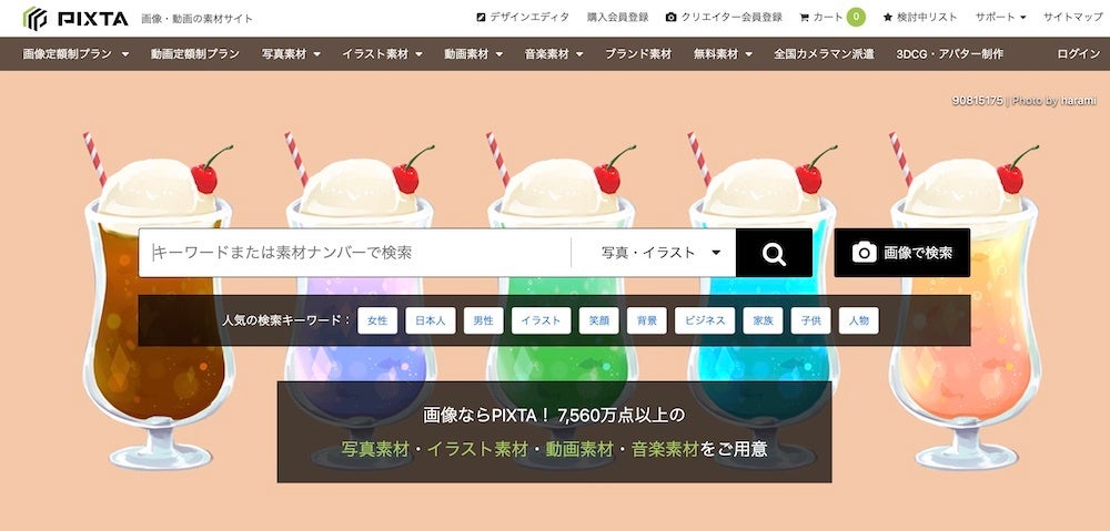 「PIXTA」はプロ・アマチュア問わず誰もが自ら制作した写真・イラスト・動画・音楽をインターネット上で売買できるデジタル素材のマーケットプレイスとして2006年5月にスタートしました。あらゆるジャンル、媒体のクリエイティブを支える豊富なイメージ画像・動画・音楽を取り揃え、日本を中心にクリエイティブ制作分野の人々から高い支持を受けています。