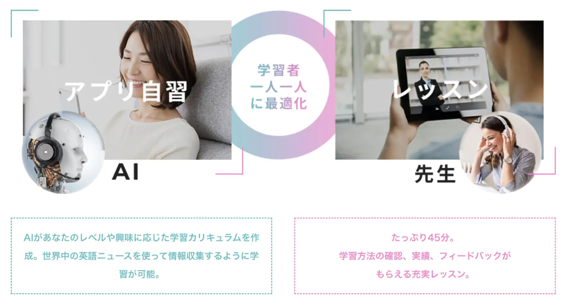 AI (アプリ) x 講師による個別最適化されたカリキュラムでビジネス英語が身につく英語研修サービスです。