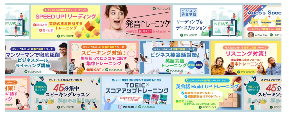 POLYGLOTSTeacherはTOEIC®900点相当の厳しい基準をクリアした講師のみを認定しています。講師のバックグラウンドは海外在住で日々英語を使って生活している講師や日本で独学で学んできた講師、現役CA、商社、旅行関連など、多種多様。ビジネスシーンで英語を使って活躍している「あなたの先輩」です。日本語で会話ができるからこそ、英語学習の悩みやネイティブとの会話でのアドバイスなど「語学」としての英語学習を超えたレッスンが可能!初心者から安心してご参加いただけます。