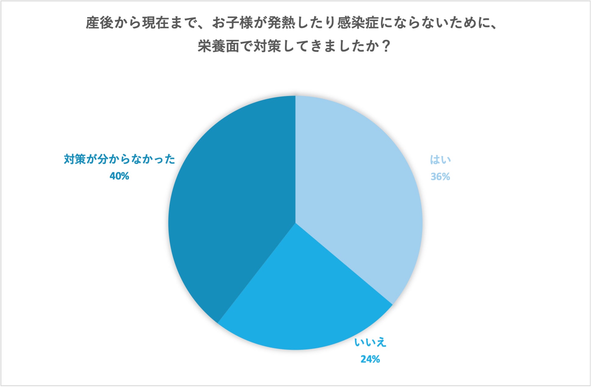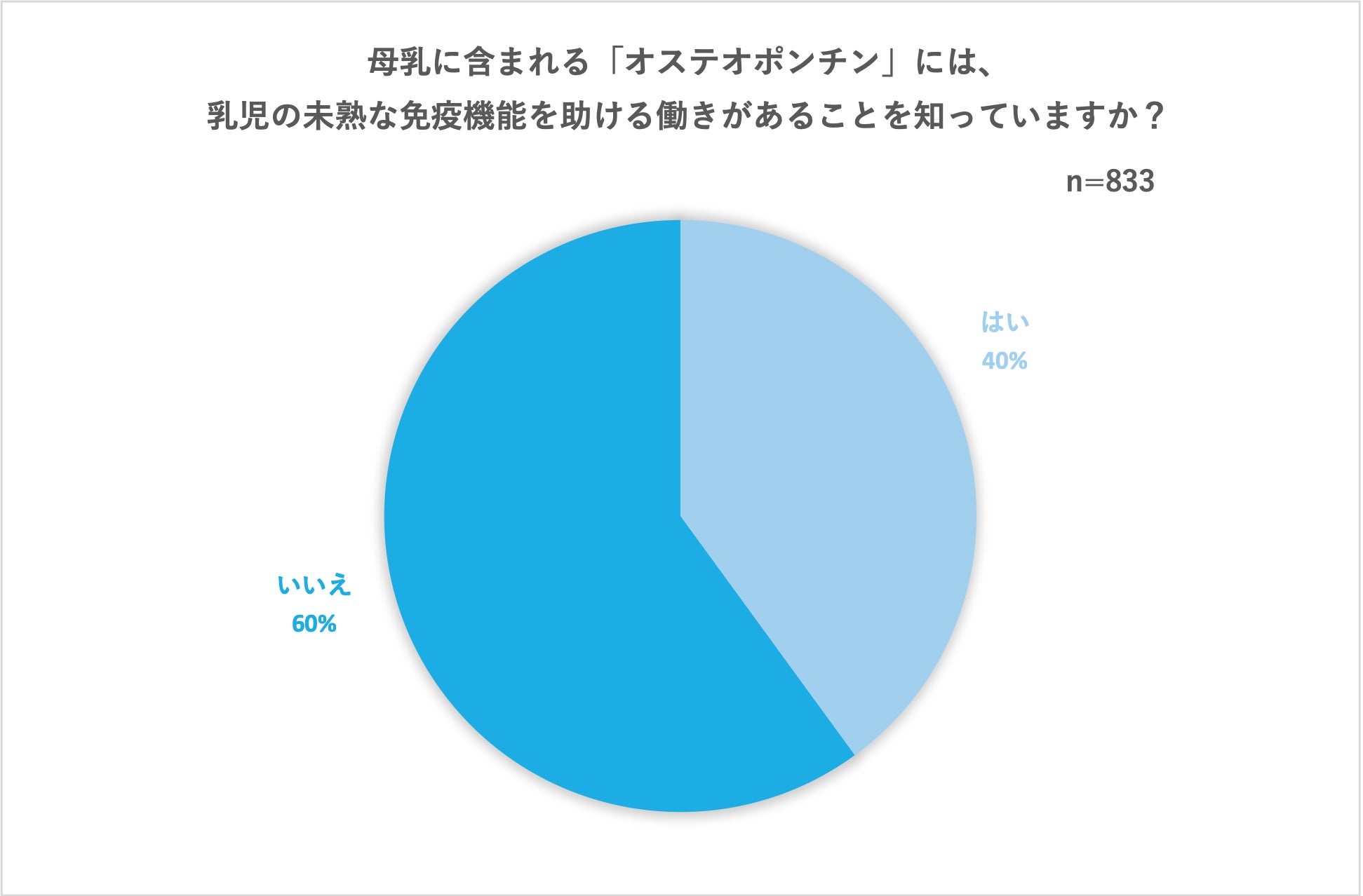 オステオポンチンには乳児の未熟な免疫機能を助ける働きがあることを知っているか聞いたところ、「はい」と答えた人は全体の40%となりました。