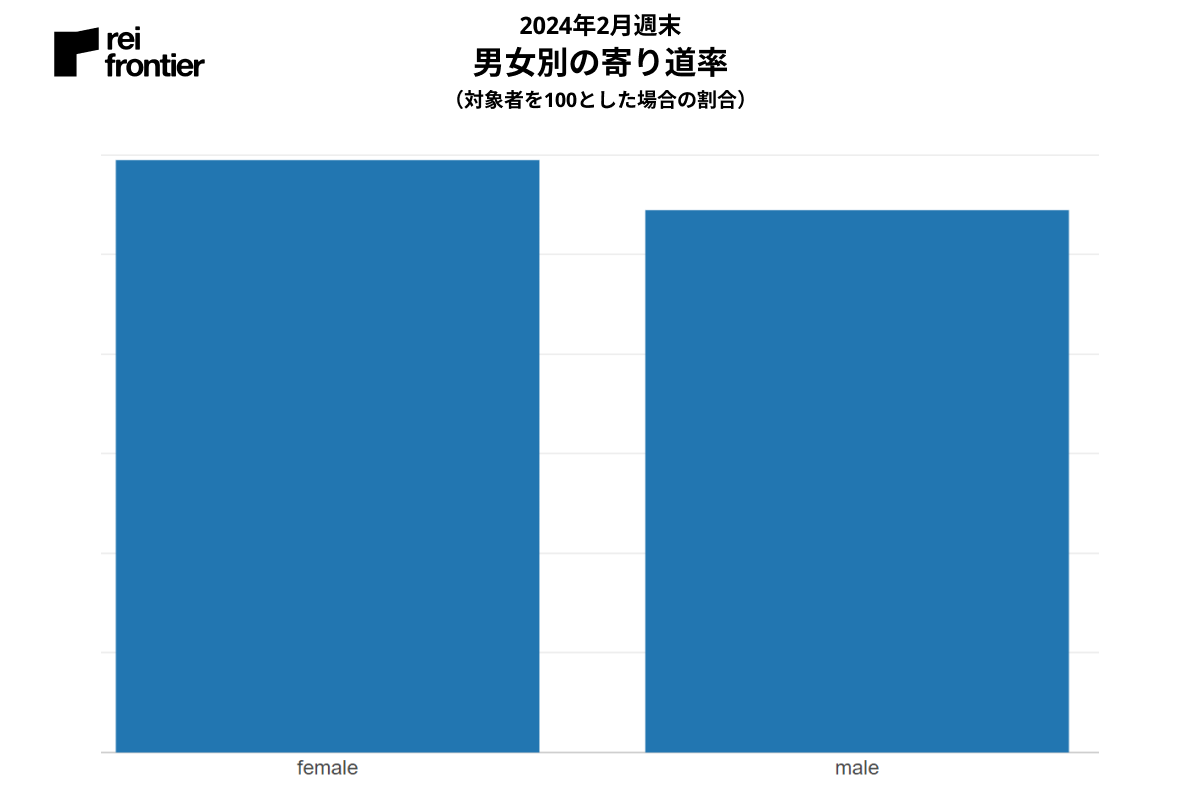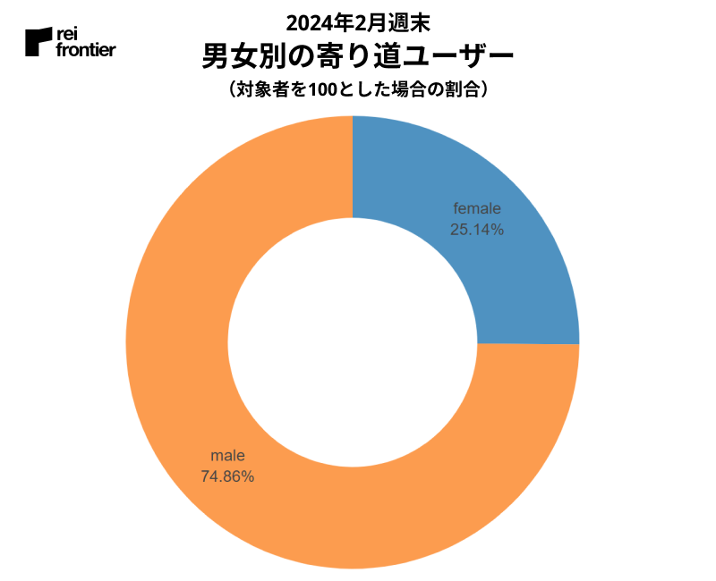対象ユーザーは全体で男性が3/4を占めていましたが、寄り道ユーザーの結果から僅かな差ですが女性の方が寄り道をする傾向があると分かりました。
