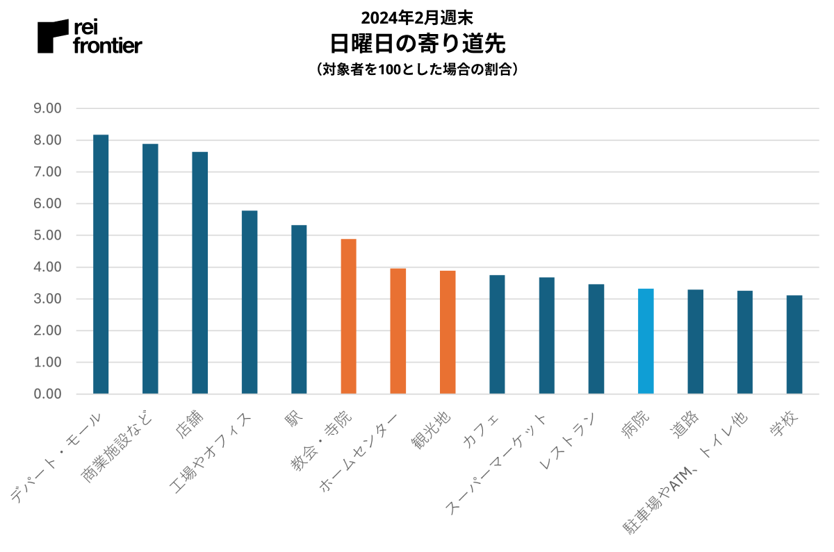 日曜は「教会・寺院」「ホームセンター」「観光地」がランクインしています。