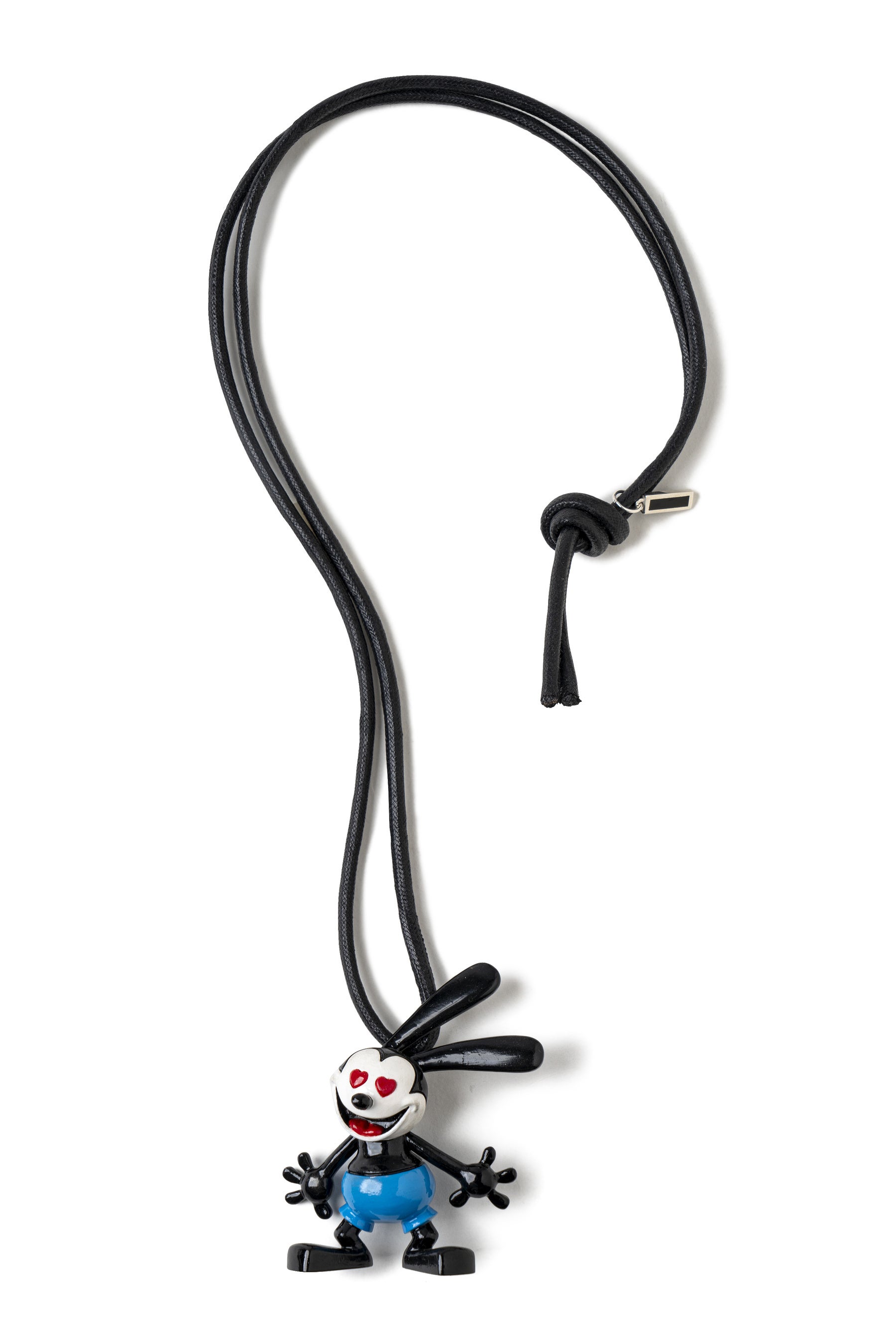 ネックレスはオズワルドの全身を3Dで表現。その表情のディテールまで細部に渡るこだわりを尽くした精巧なデザイン。留め具部分にJAM25周年を祝したオリジナル「黒バー」チャームが付いています。耳の後ろには「Disney100」の刻印が。ピアスも同じくフェイス部分を表現した立体的なデザインとなっています。
