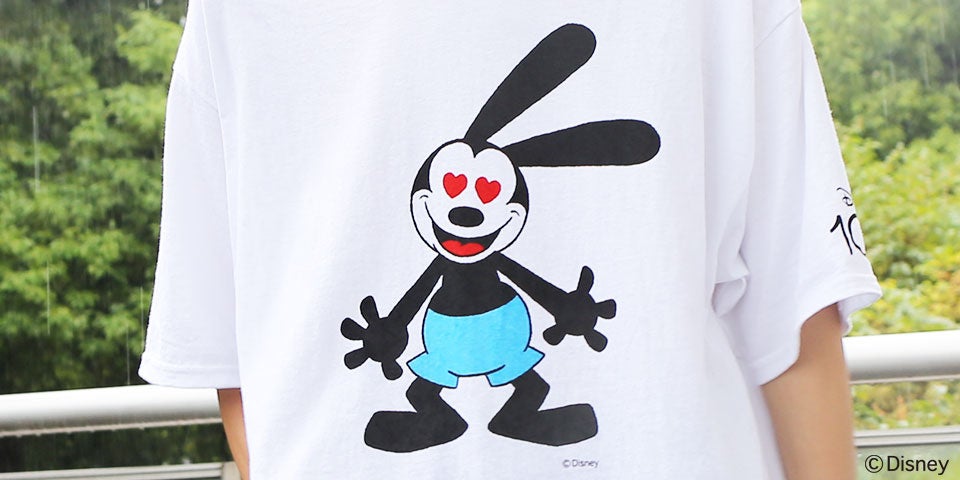 フロントには大きくオズワルドの全身が、バックに「黒バー」グラフィック、左袖には「Disney100」のロゴがプリントされています。バックプリントは「JAM HOME MADEが描いた『愛』は、黒いバーです。(黒いバー=黒バー=CLOVER)」という日本語と英語をクロスオーバーさせた表現をビジュアルでカタチにし、愛の表現を問いかける仕掛けにしています。
