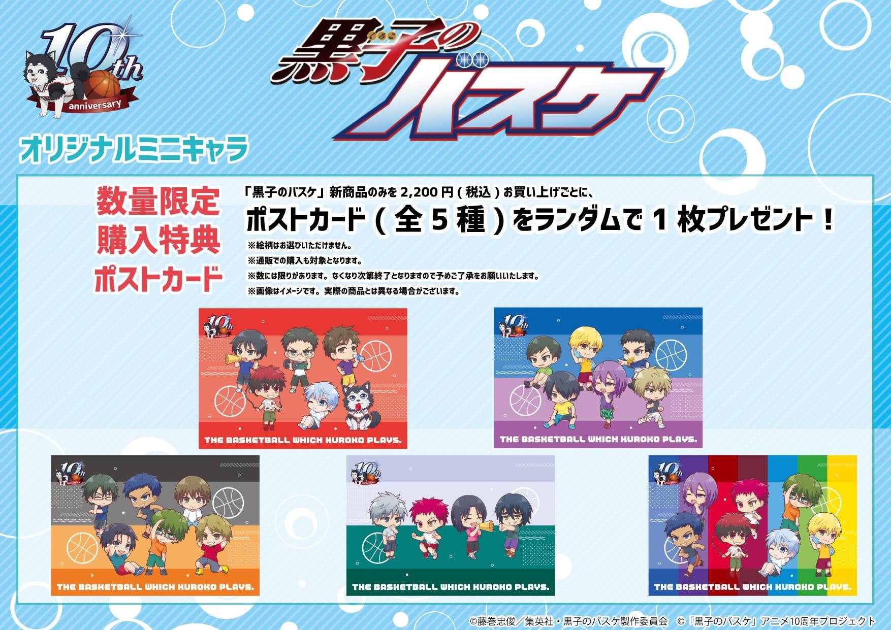「黒子のバスケ」新商品のみを2,200円(税込)お買い上げごとに、ポストカード(全5種)をランダムで1枚プレゼントいたします。