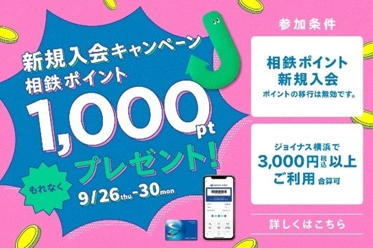 期間中、相鉄ポイント新規入会の方に限り、ジョイナスで3,000