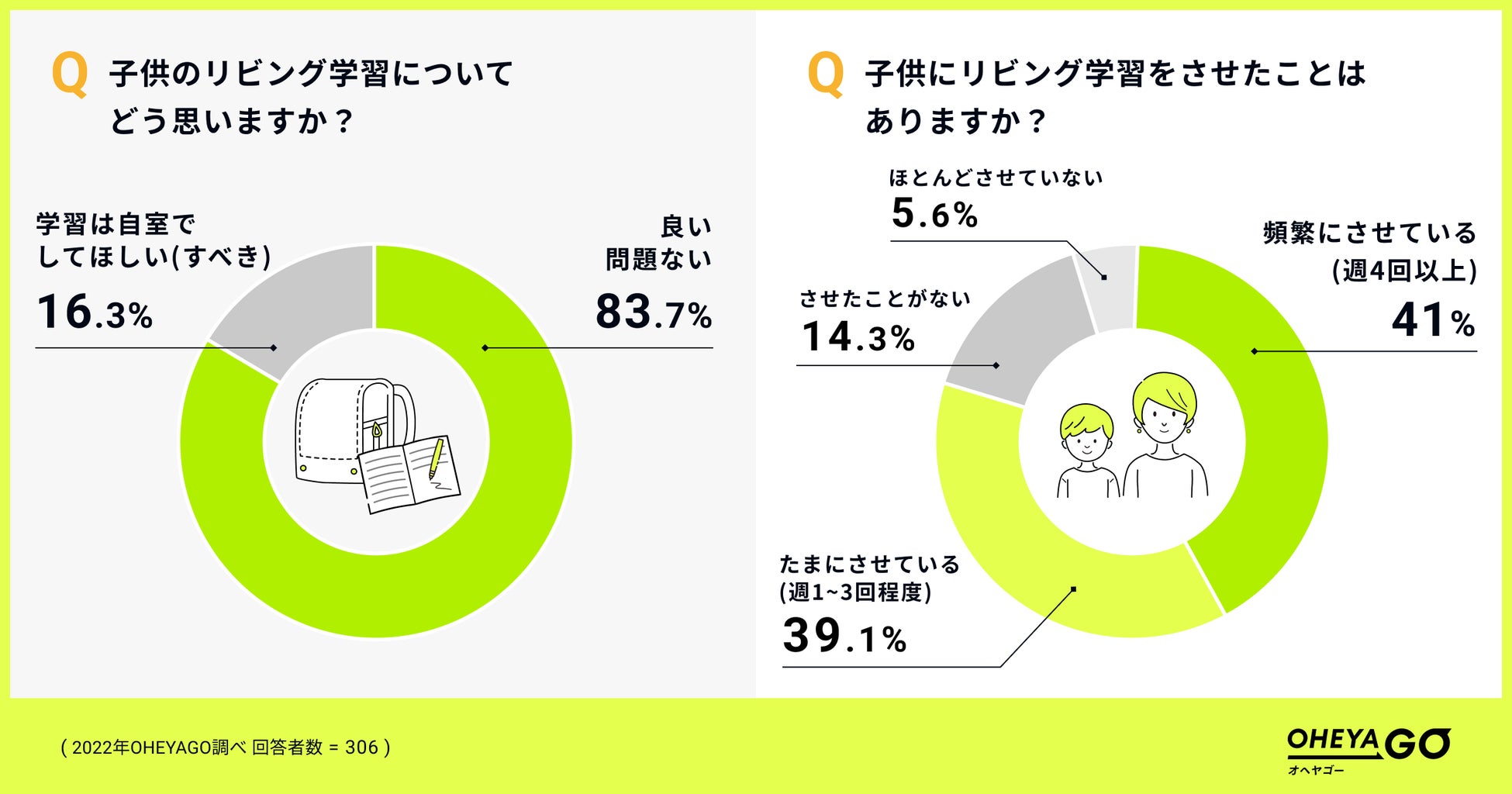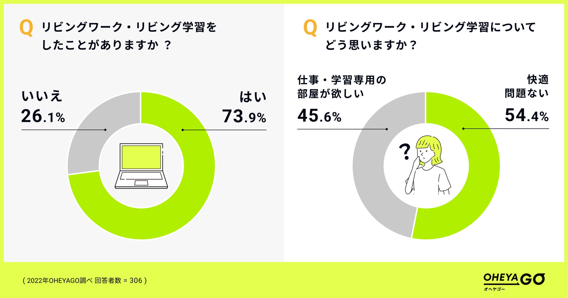 テクノロジーで不動産の賃貸取引をなめらかにするイタンジ株式会社は、スマートフォン上でお部屋探し、内⾒予約、入居申込から契約までが完結する、ネット不動産型賃貸サービス「OHEYAGO(オヘヤゴー)」 ( https://oheyago.jp/ )の、Twitterアカウントのフォロワー306⼈に対し実施した「リビングワーク・リビング学習」に関する意識調査の結果を発表します。