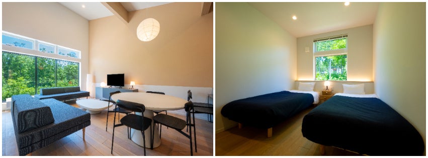 最大91㎡の2階建て、6名まで宿泊可能なヴィラタイプ客室は広々とした空間にキッチン、洗濯機を完備しており、インバウンドや長期滞在・ファミリー・グループ旅行に最適です。さらに、敷地内駐車場やスキー板収納スペースも完備しており、冬のニセコを満喫するお客様にとって、より快適で便利な滞在をサポートします。