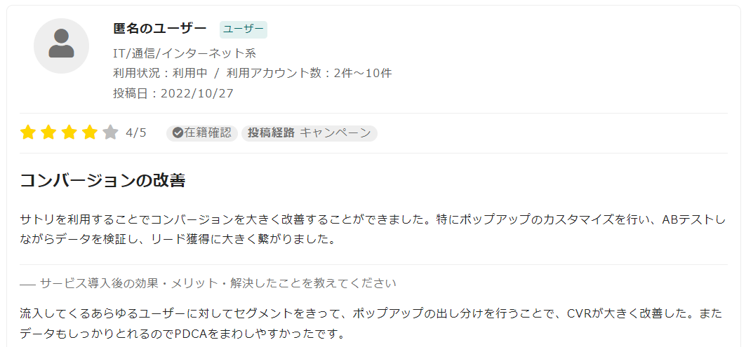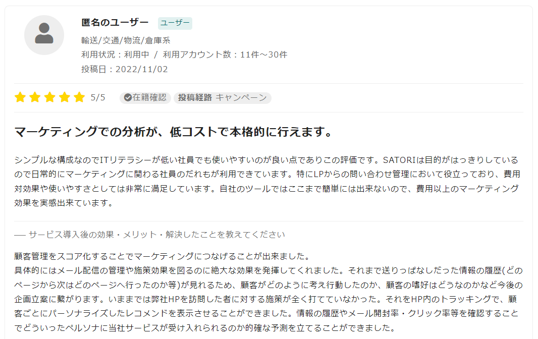 ▼MAツール「SATORI」の口コミ一覧はこちら