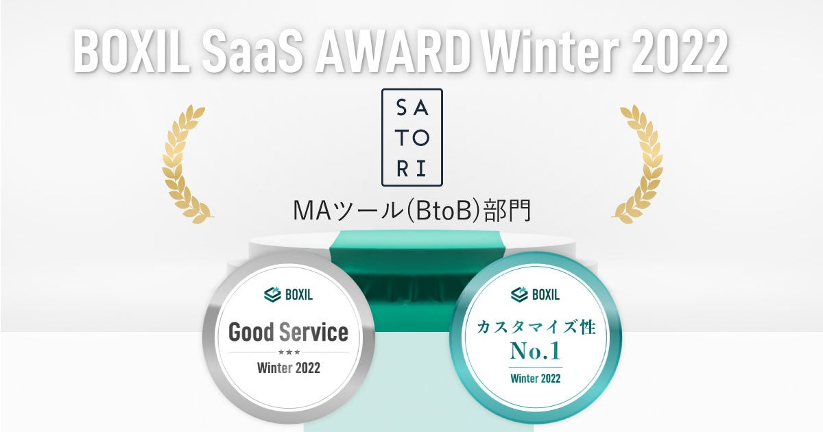 MAツール「SATORI」、「BOXIL SaaS AWARD Winter 2022」MAツール(BtoB)部門で「Good Service」「カスタマイズ性No.1」に選出