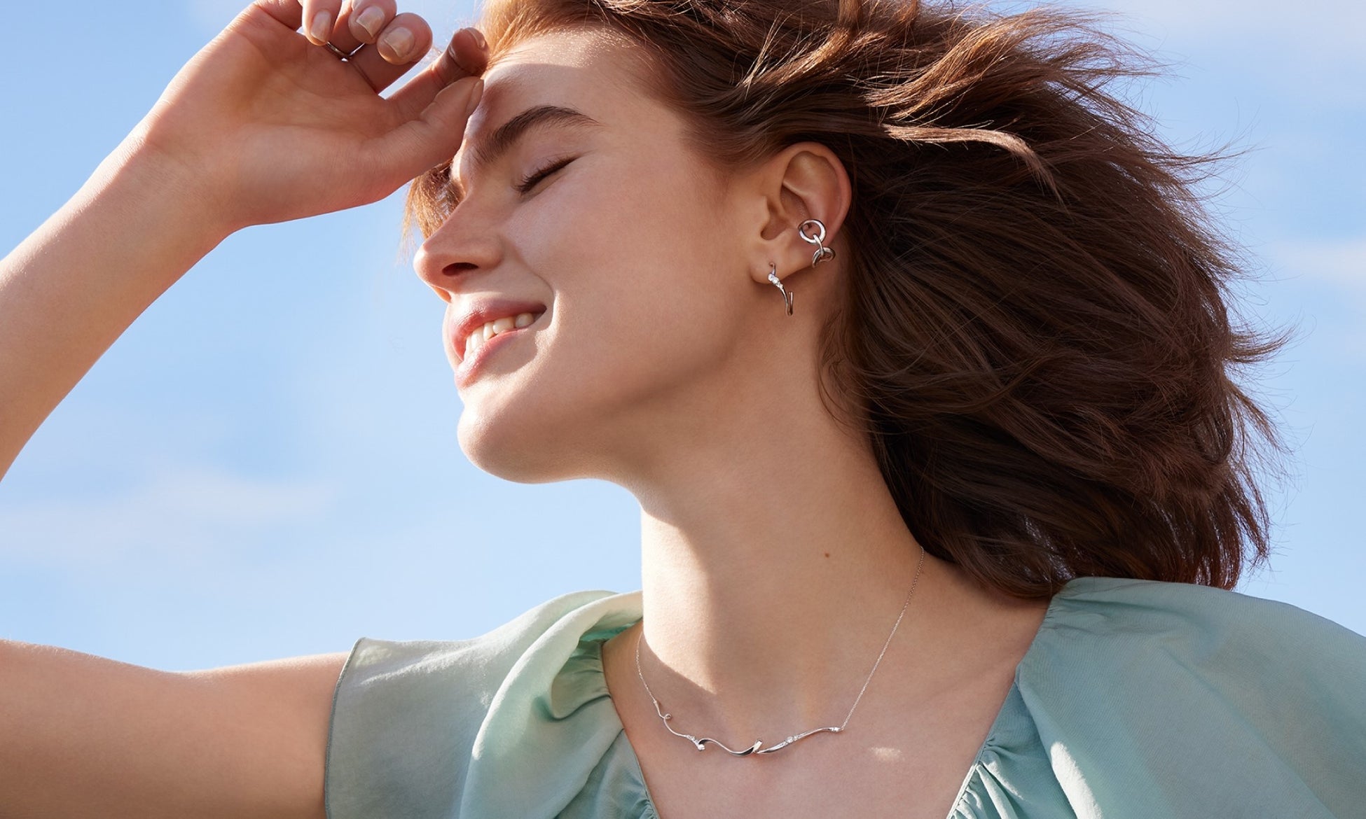 しなやかな曲線で、夏の爽やかな風を受けた海のしずくを軽やかに表現。甘すぎることなく可憐な、絶妙なバランスのジュエリーは、普段の装いに背伸びしすぎない大人の印象をプラスしてくれます。