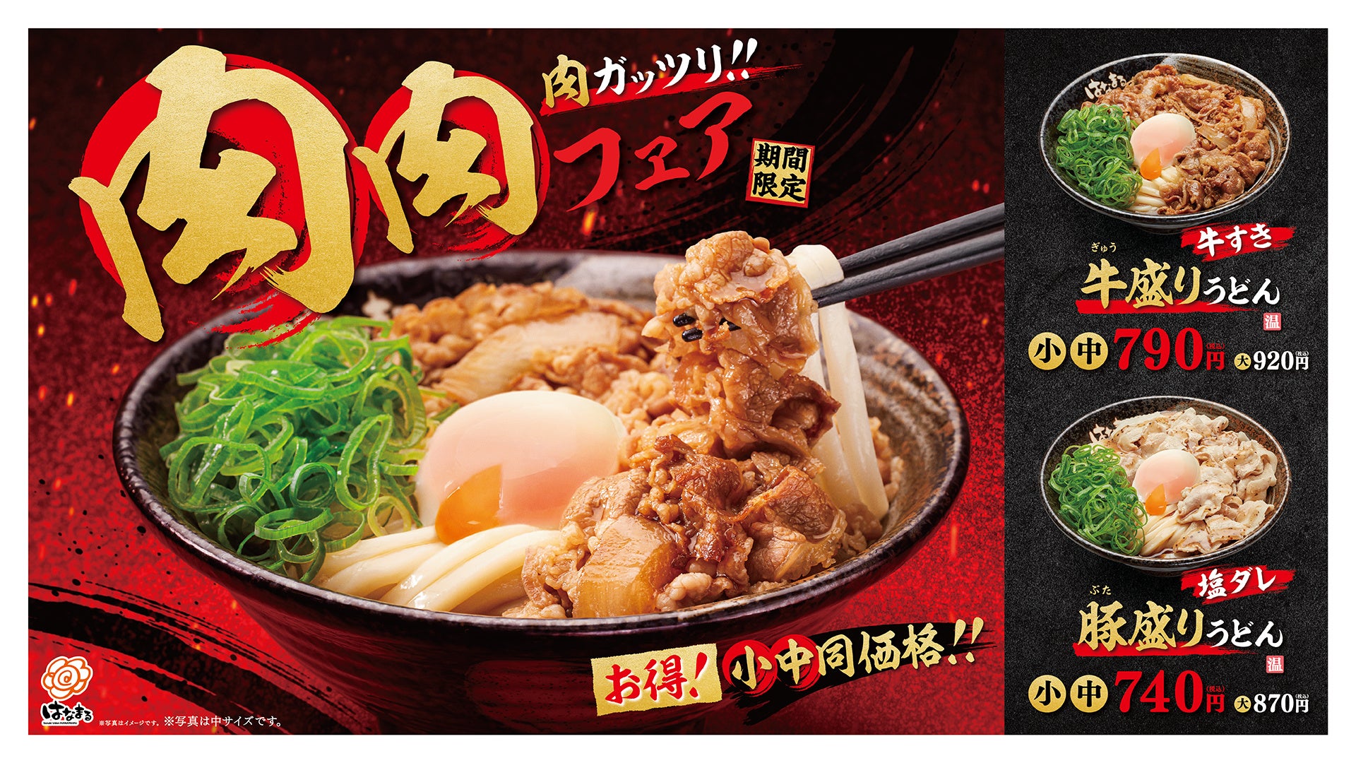 はなまるうどん\ お得な小中サイズ同価格「肉ガッツリ!! 肉肉フェア」 /