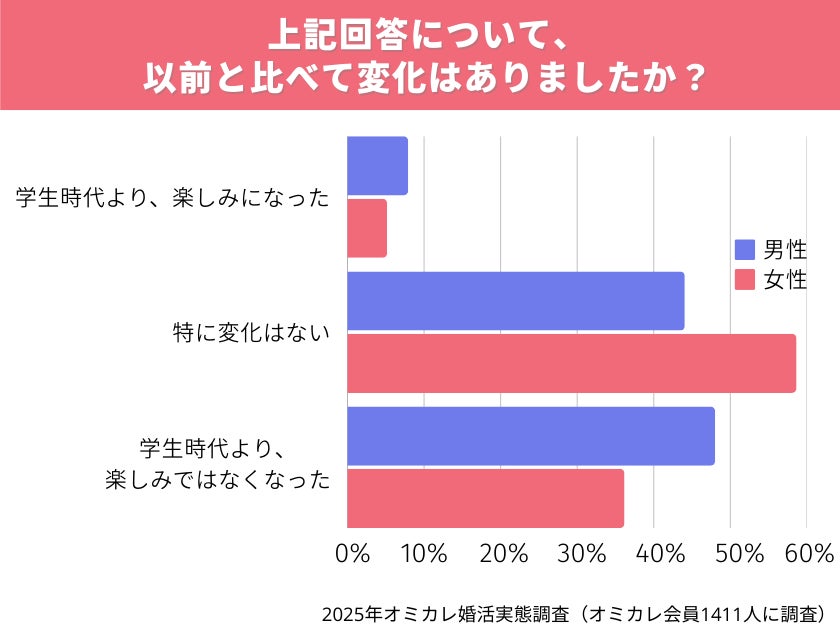 また、女性の約48%・男性の約36%はバレンタインデーについて「学生時代より、楽しみではなくった」と回答しており、年齢を重ねることで楽しみな気持ちに変化があるイベントといえます。