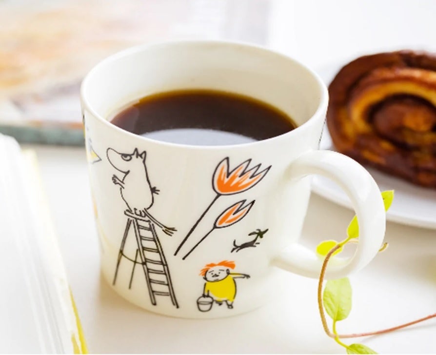 マグカップにデザインされている原作者トーベ・ヤンソンがかつて赤十字のために描いたアートはコレクターならずとも、つい手にしたくなるやさしさにあふれています。