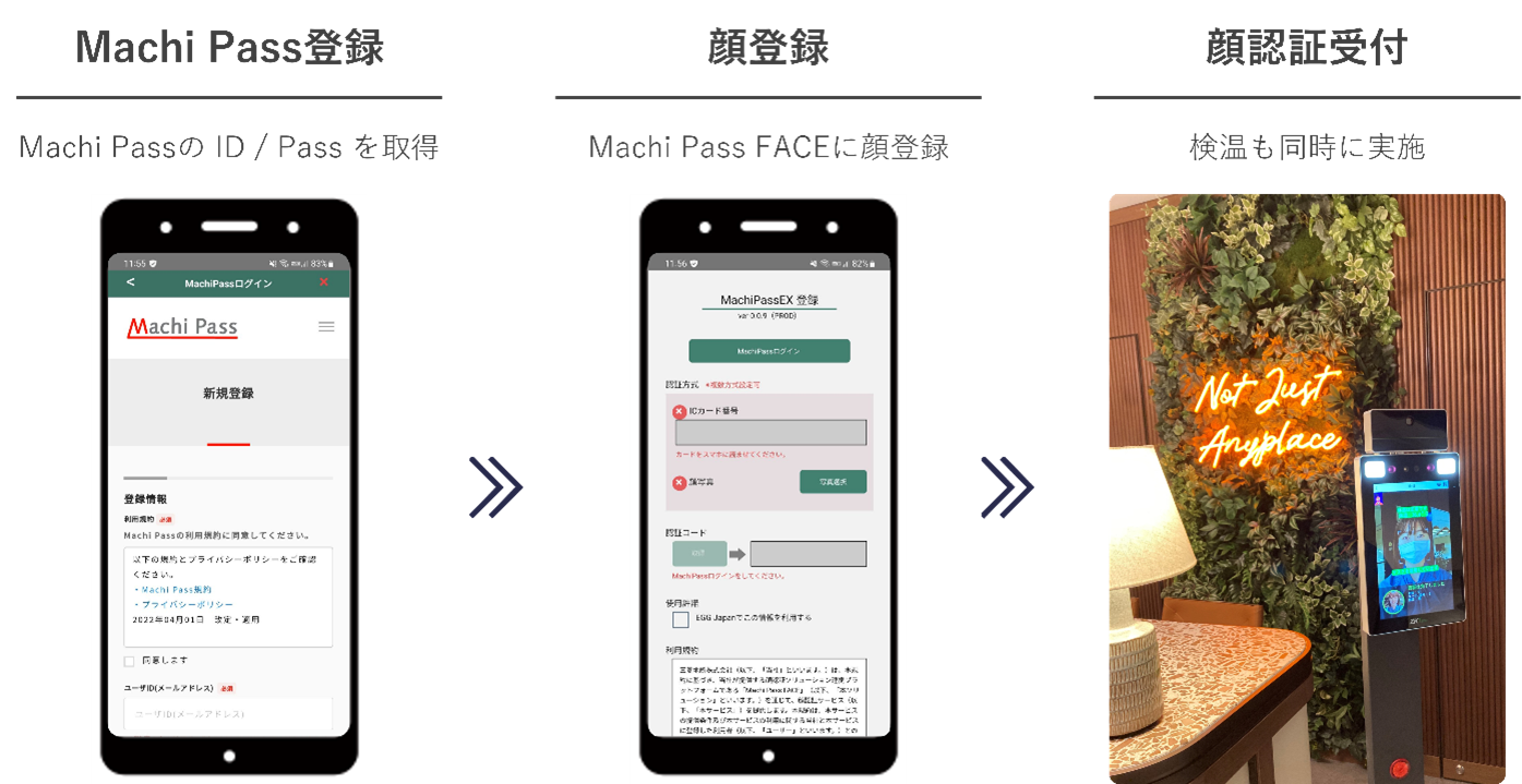 このたび、「EGG」に導入した顔認証サービス連携基盤である「Machi Pass Face」も、「Machi Pass」と連携することで、「EGG」 で顔認証を利用するユーザは、「Machi Pass」と連携する他のサービスや認証手段も、一つのIDで利用可能となります。