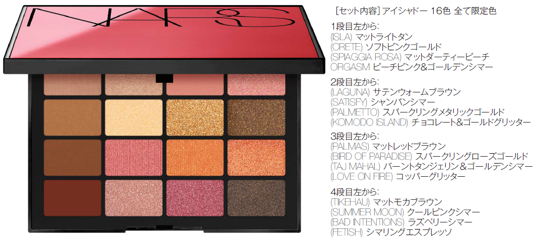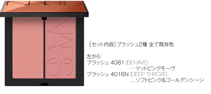 ※NARSカウンター、店舗に伴うNARS取り扱い各ECサイト、@cosme SHOPPING、NARS Cosmetics オフィシャルサイト限定発売