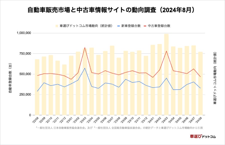 新車に関しては、例年8月は長期休暇の影響もあり7月と比べて減少する傾向にあります。