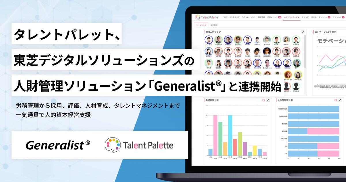 タレントパレット、東芝デジタルソリューションズの人財管理ソリューション「Generalist®」と連携開始