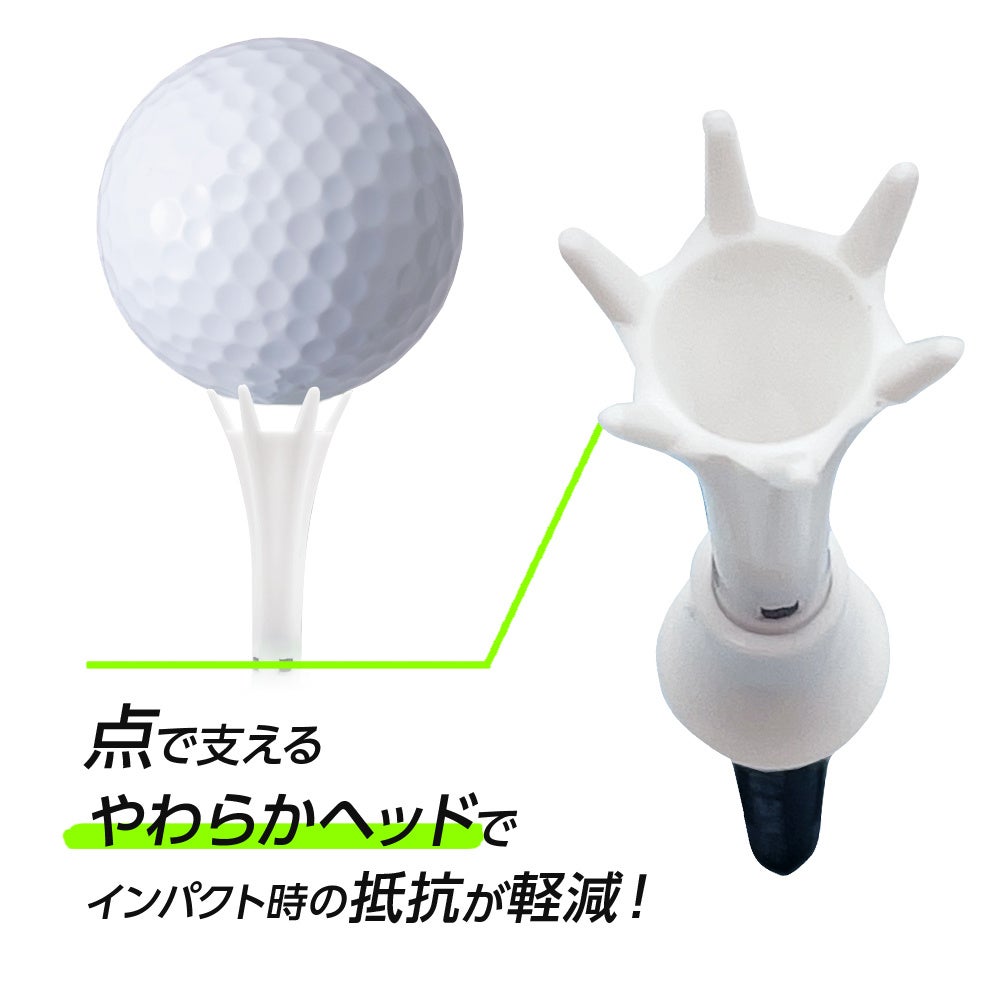 上部が王冠状になっており、6ヵ所の点でボールを支えます。ヘッド部分は柔らかい素材を使用し、インパクト時の抵抗が軽減されるので、振り抜きがよくなります。