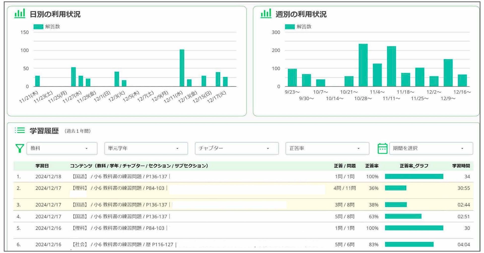児童生徒の1問毎の