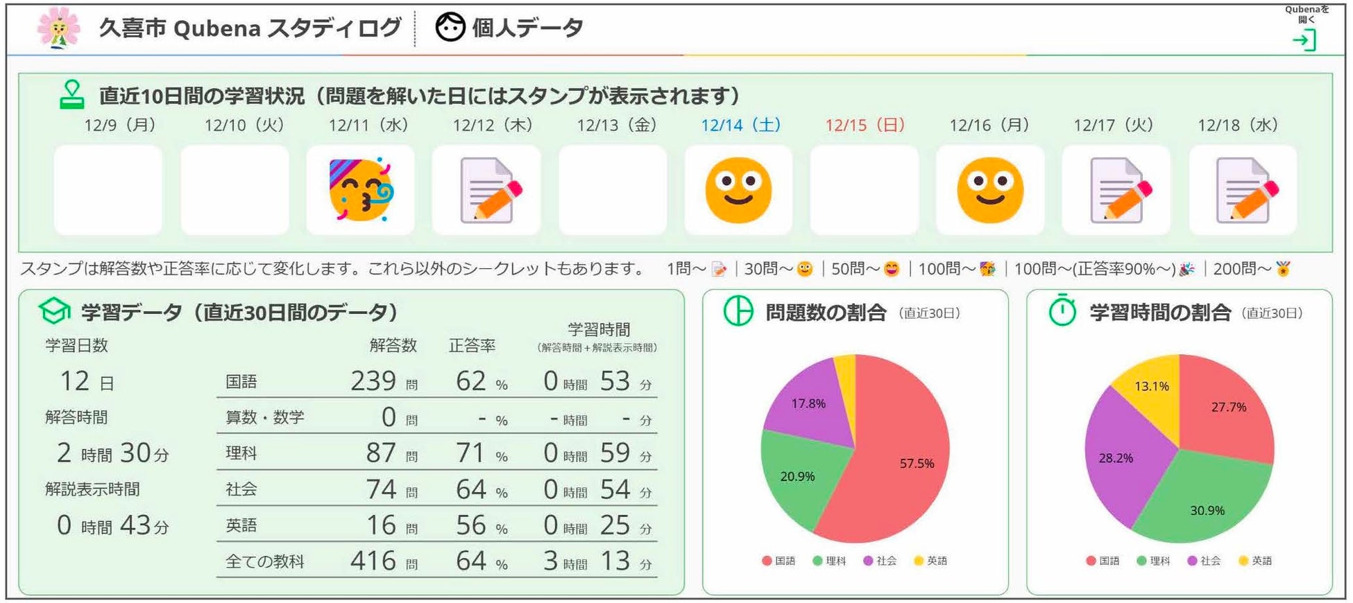 教育データ利活用には、日々の学習データが必要不可欠です。キュビナは全国の自治体・学校で日々の学習活動に積極的に活用いただいており、累計解答数は25億件を突破しています。このたびの連携では、キュビナを導入いただく、久喜市の小中学校におけるキュビナの学習データを連携予定です。