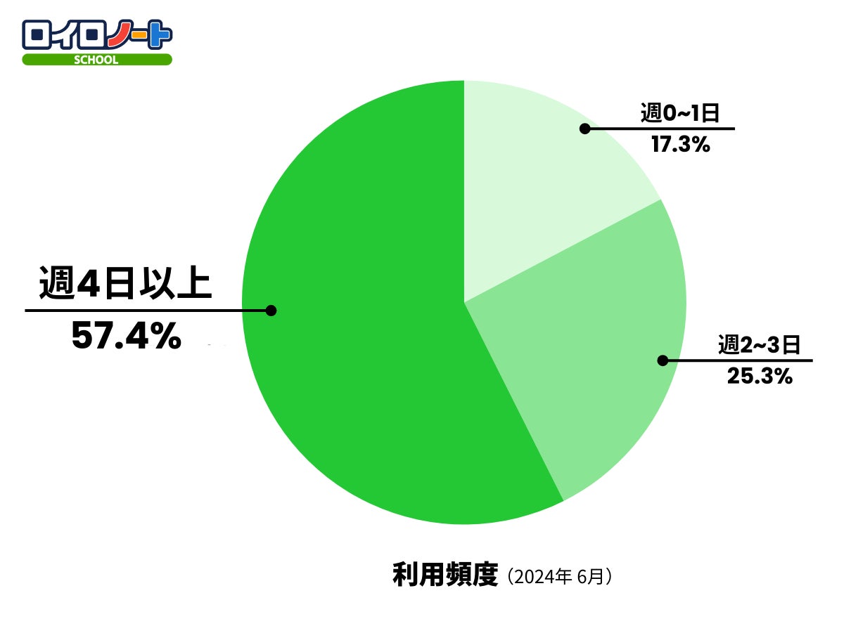 利用頻度については、約6割のユーザーがほぼ毎日(週に4日以上)ロイロノート・スクールを使用していることがわかりました(当社調べ)。学校の授業で、ロイロノート・スクールは欠かせない文房具になっています。