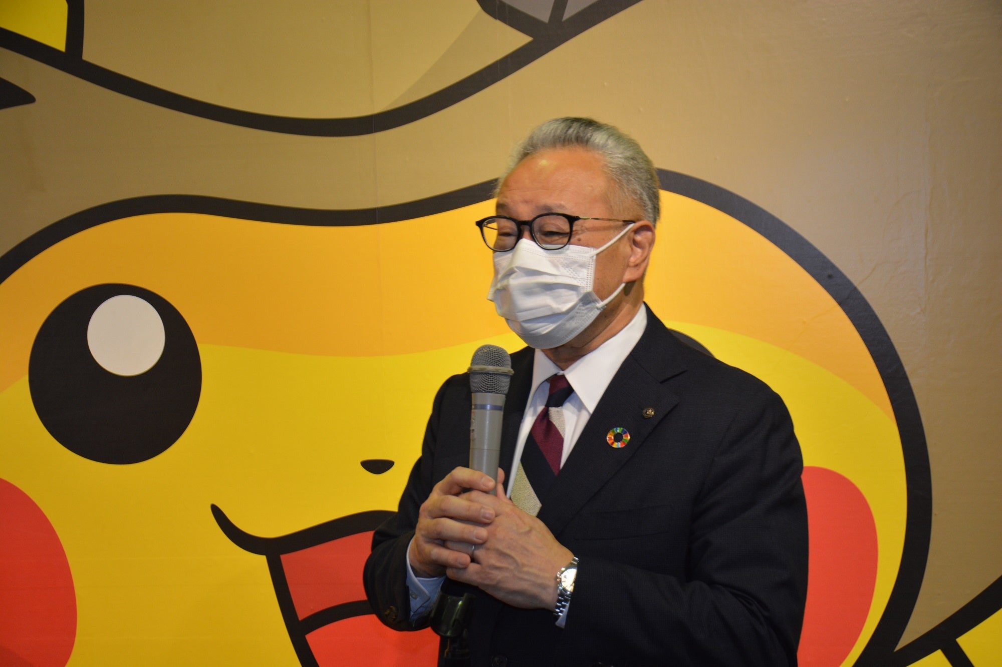 「知り合いの紹介で来ました。選ばれたことに驚きしかありません」と父親の恭兵さん(32)。明希歩ちゃん(3)は、「発掘ピカチュウ」の登場に大喜びで「ピカチュウ大好きです」と、テンションが上がっていました。今井さん一家には、「発掘ピカチュウ」のぬいぐるみなどが贈られました。