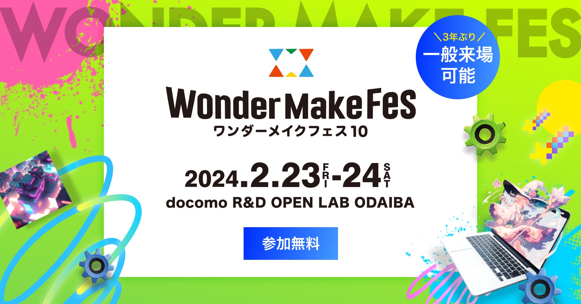 3年ぶりに一般来場可能!年長~高校生まで楽しめるIT×ものづくりの祭典『ワンダーメイクフェス10』を2月23日、24日に開催