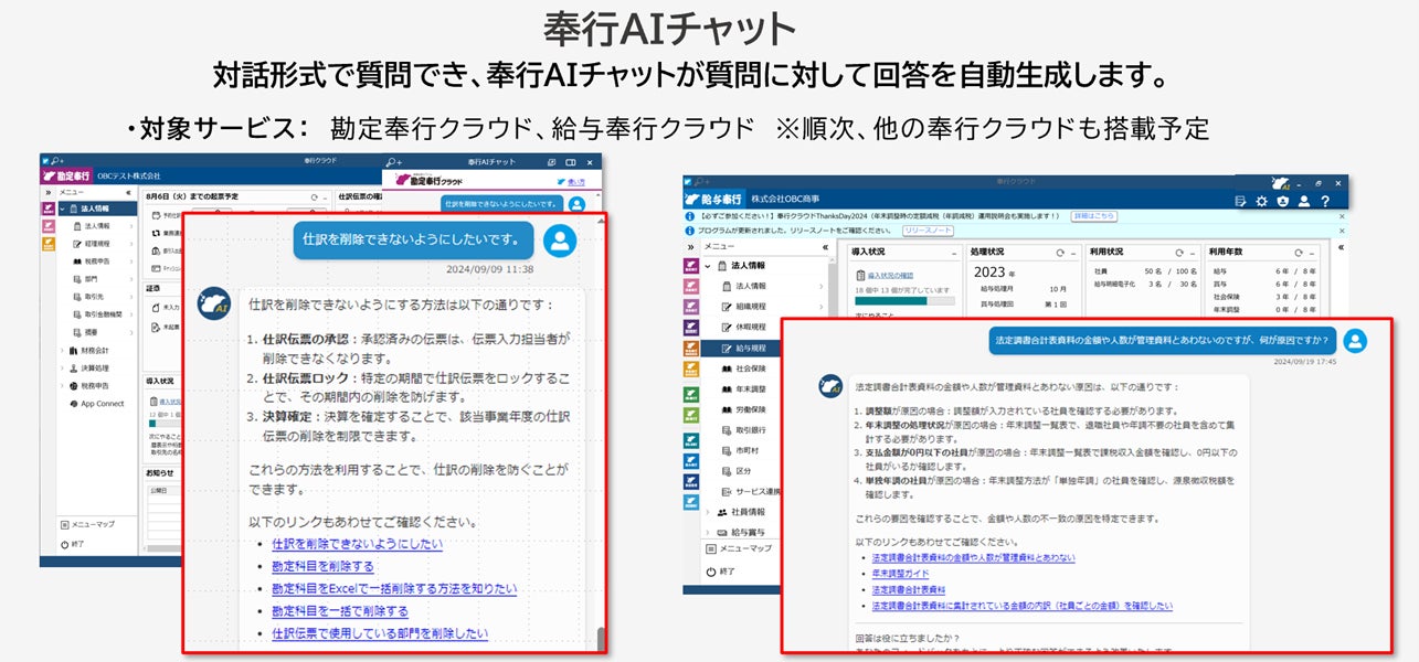 OBC、『奉行クラウド』に「奉行AIチャット」を新たに搭載