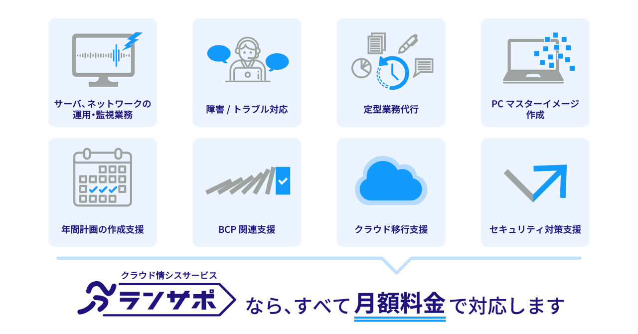 「ランサポ」は、情報システム業務をクラウドから支援する、クラウド情シスサービスです。
