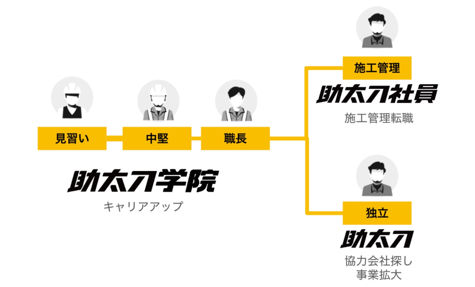 20万超の登録事業者が利用する国内最大級の建設人材マッチングプラットフォームを運営する株式会社助太刀(以下 「当社」)が、新たに教育事業へ参入することをお知らせいたします。職人への教育サービスを提供する「助太刀学院」を2024年10月に開校いたします。これにより、職人は施工管理などの新たなキャリアパスを実現することが可能になります。また、他業界からの入職機会を創出することで建設業界の人手不足への貢献を目指します。
