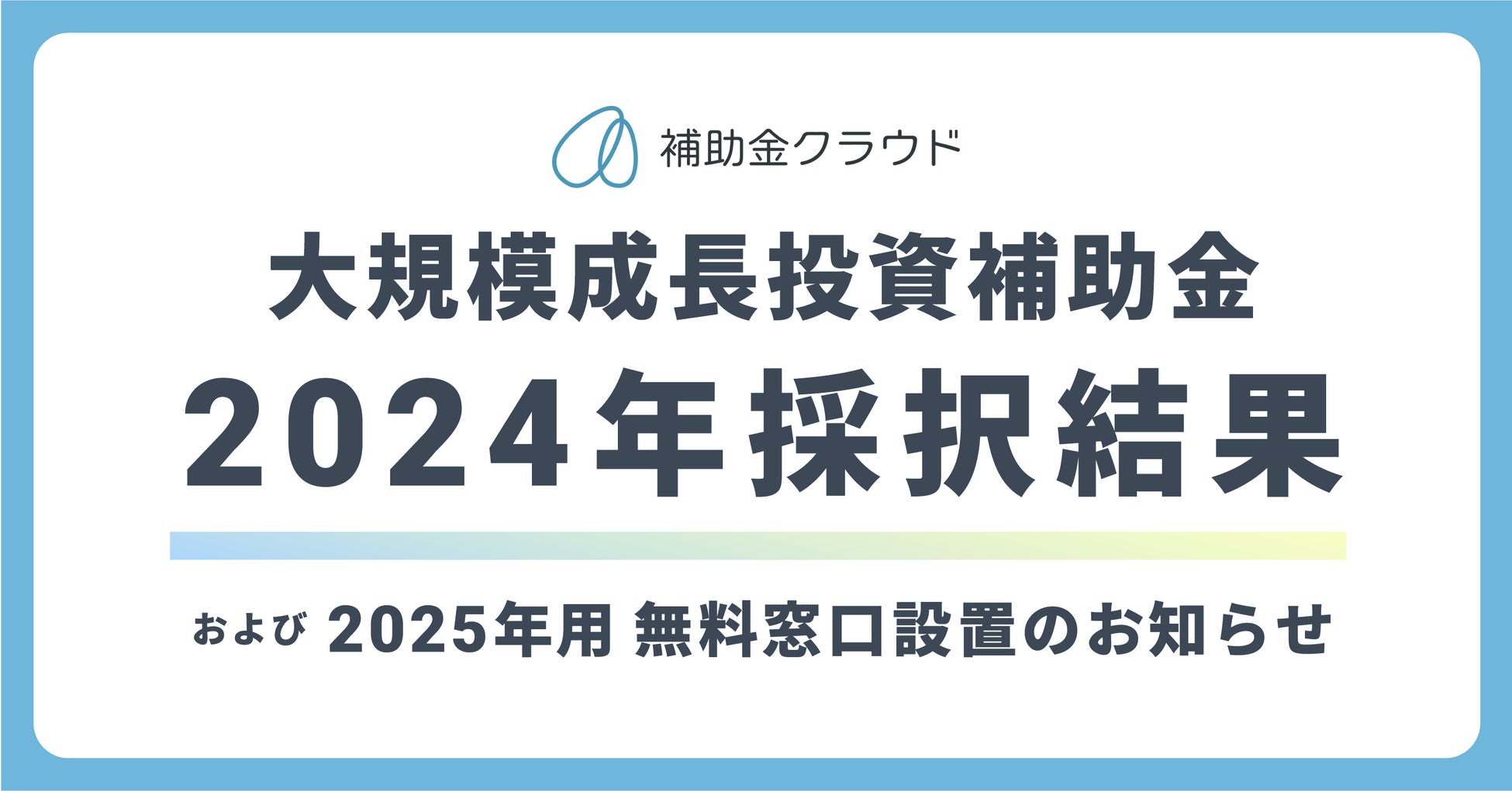 2024年大規模成長投資補助金の採択結果および2025年用無料窓口設置のお知らせ