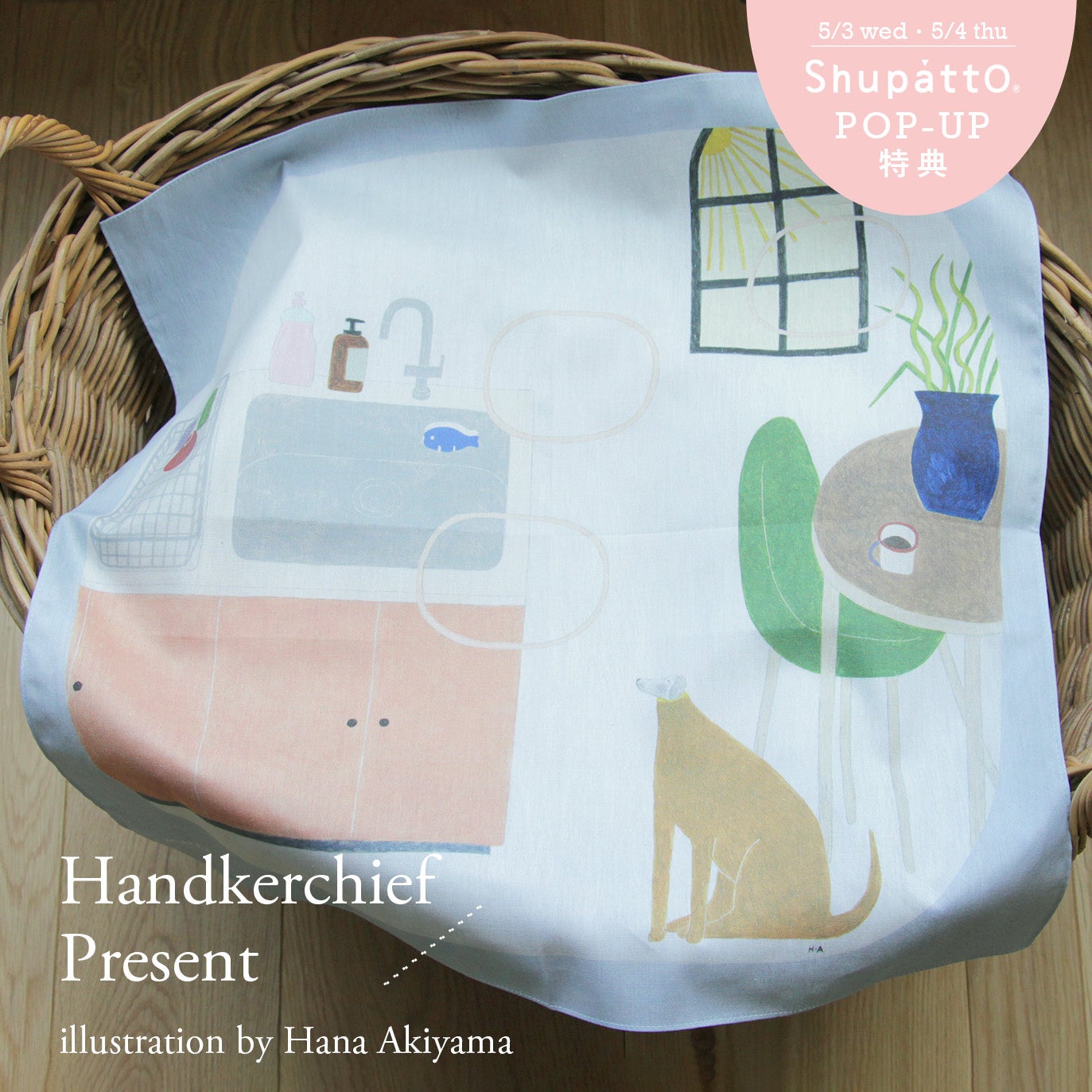 商品のご購入&Shupatto公式Instagramのフォロー&会場を撮影しシェアいただいた全員に「おさかなスポンジのある暮らしハンカチ」をプレゼント。