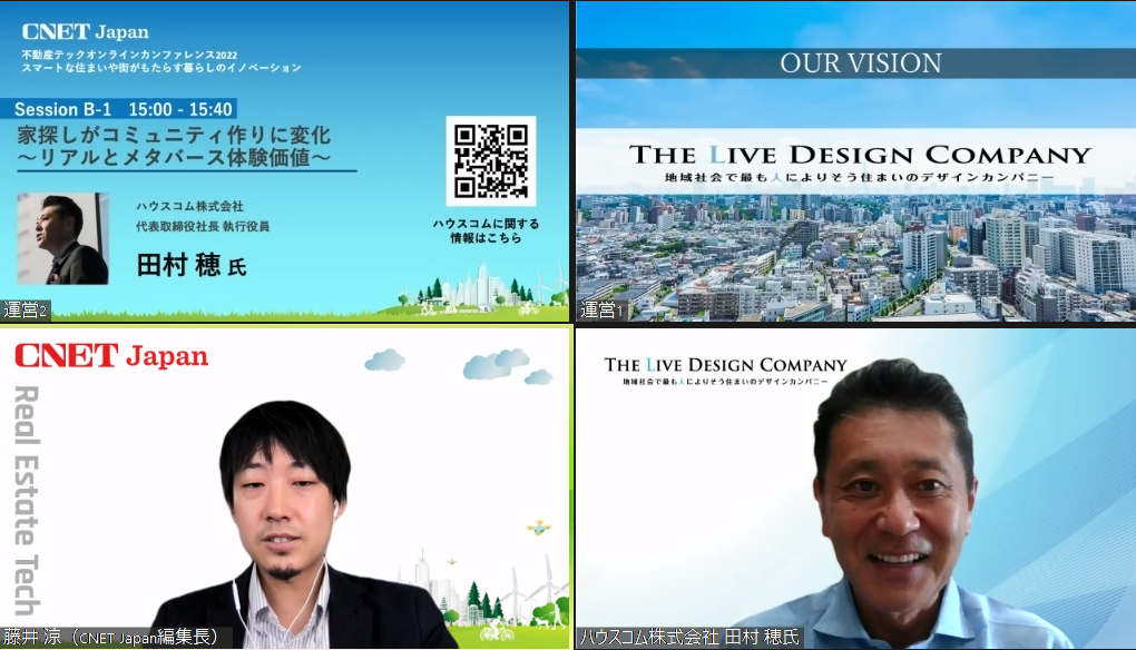 大規模イベント「CNET Japan不動産テックオンラインカンファレンス」にハウスコム 代表 田村が登壇し、リアルとメタバース体験の価値を解説