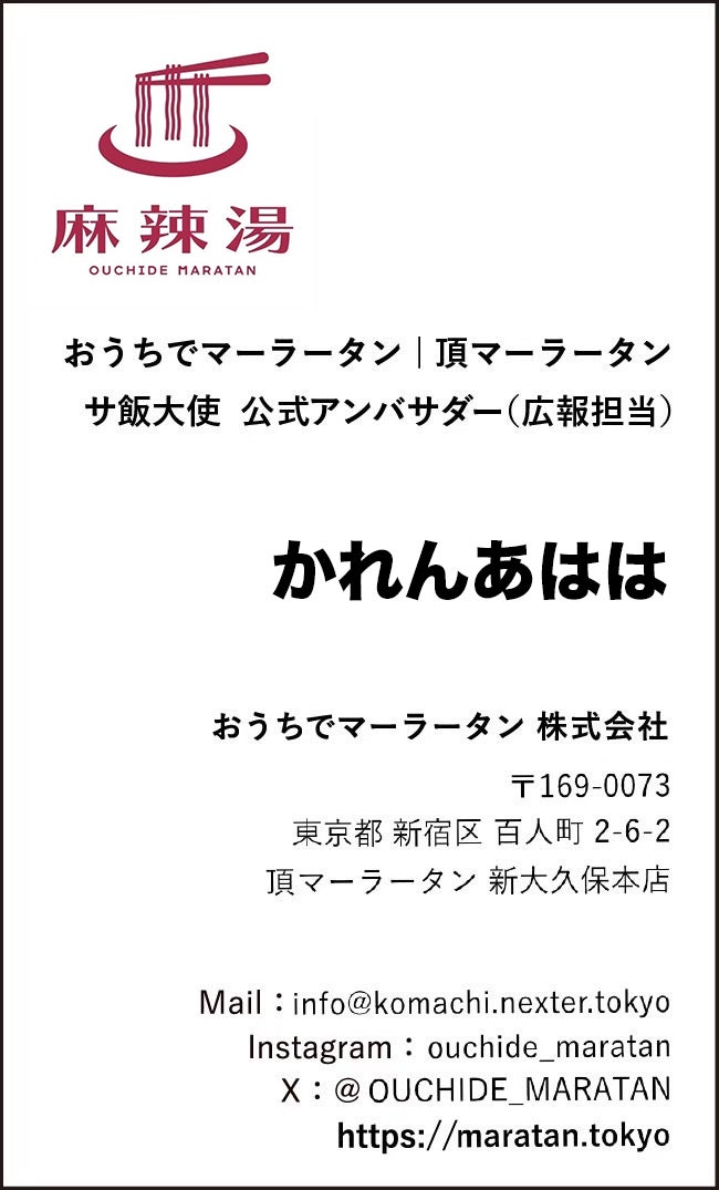 新宿名物 元祖和製麻辣湯「おうちでマーラータン」公式アンバサダー|サ飯大使として、麻辣湯の魅力を全国にお届けいたします。