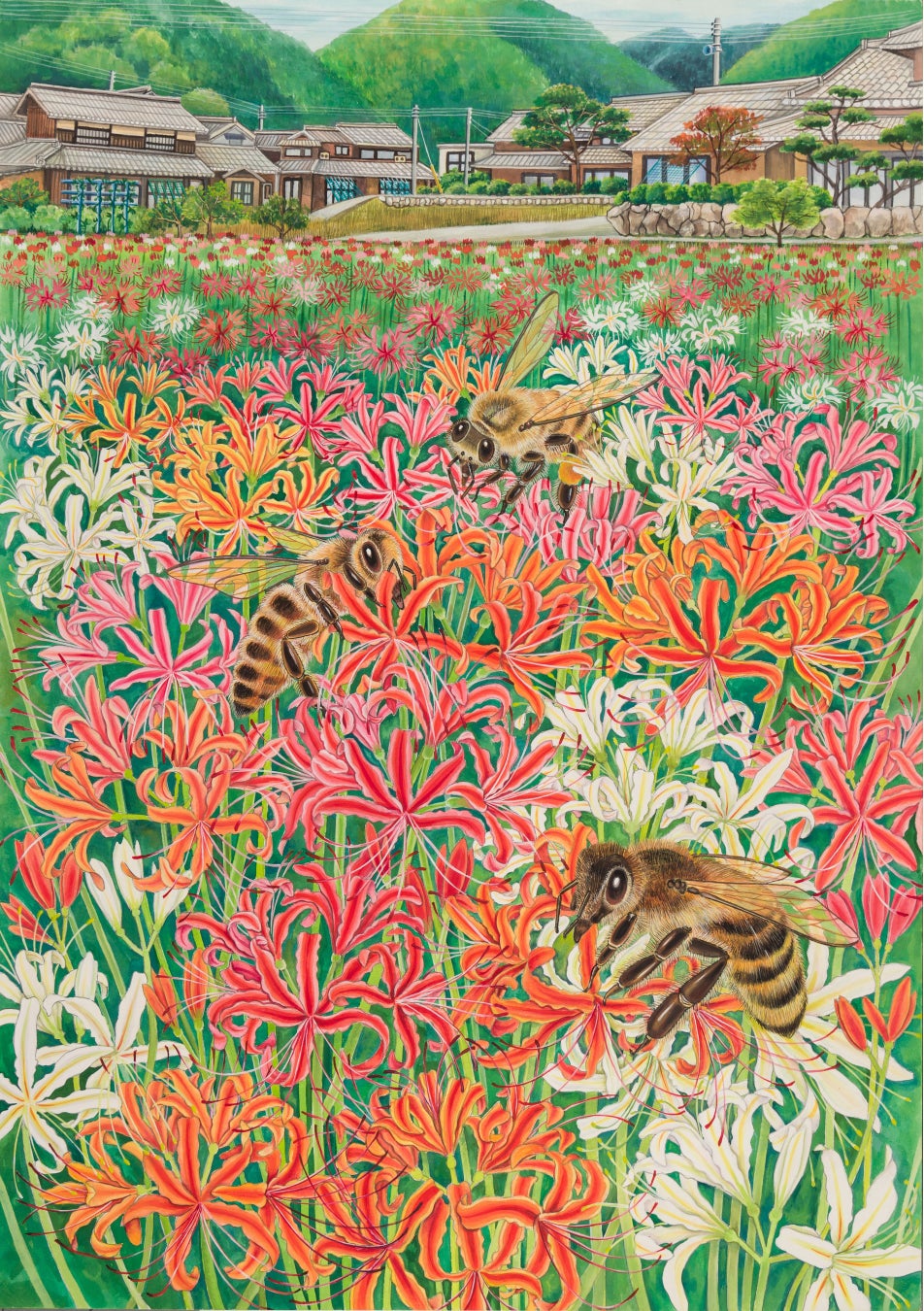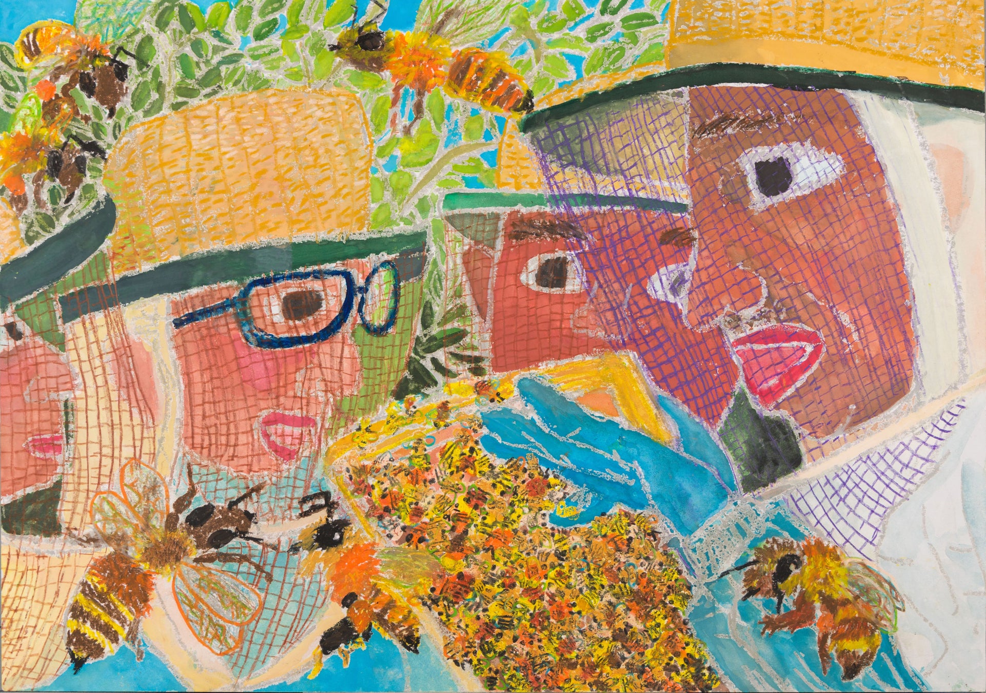 自然環境の大切さや人との関わりを感じられるミツバチを描いた絵画