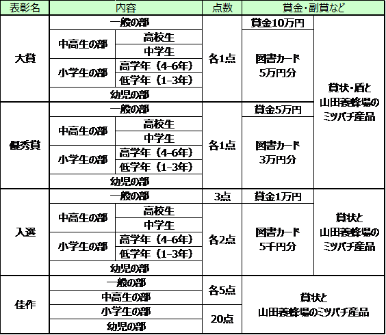 【受賞発表】 :2023年10月下旬に山田養蜂場Webサイト、朝日小学生新聞、朝日中高生新聞にて掲載予定