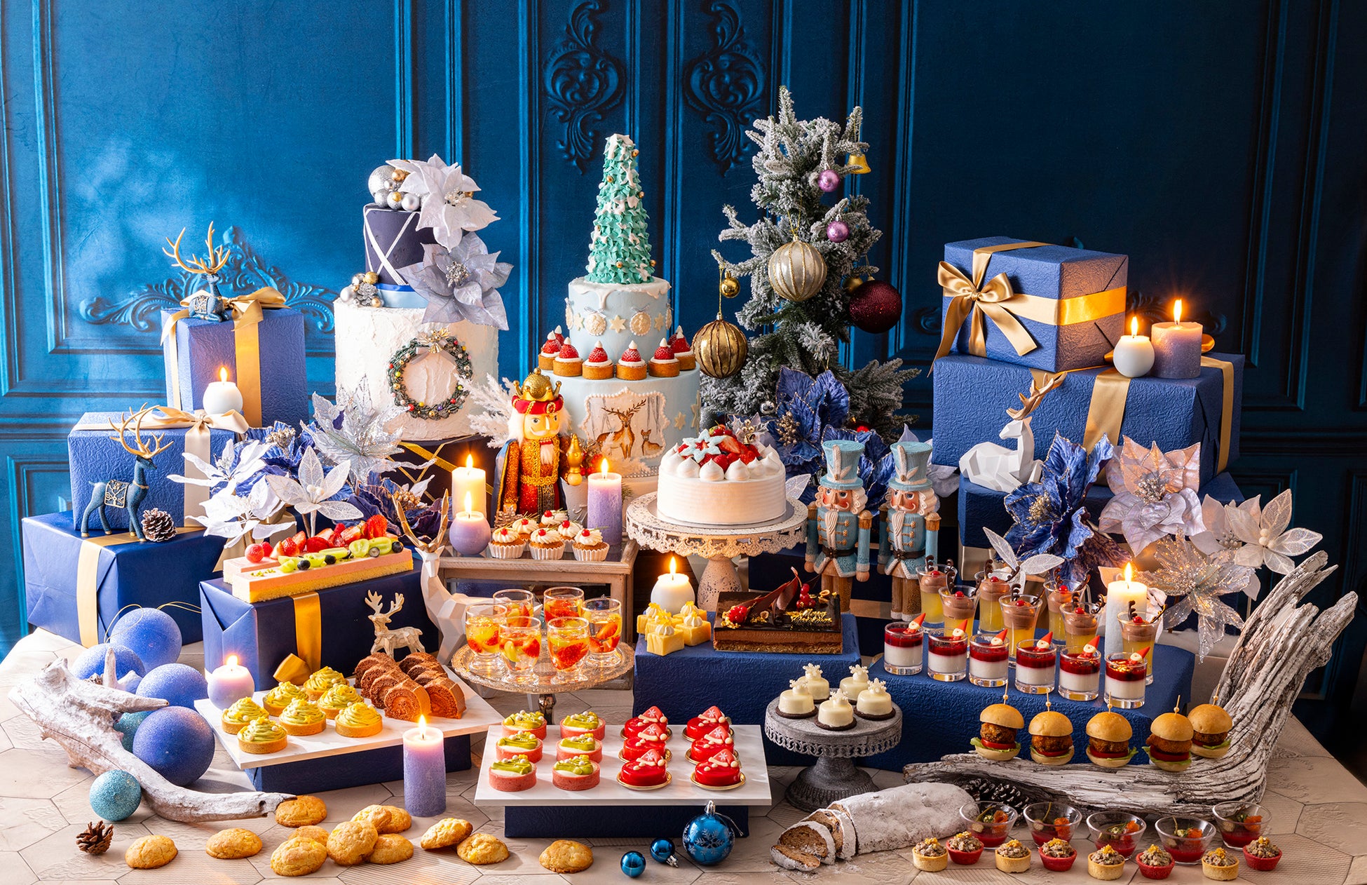 北海道産の生クリームと国産いちごを味わう「いちごのショートケーキ」や、たっぷりのフルーツをシャンパーニュのゼリーに閉じ込めた「シャンパーニュゼリー」など、フェスティブシーズンにふさわしいエレガントなスイーツに加え、サンタクロースやトナカイ、雪の結晶などクリスマスのモチーフを模った計14種類の可愛らしいスイーツをお好きなだけお楽しみいただけます。また、ライブステーションではピスタチオクリームをお客様の目の前で絞るモンブランをご提供します。