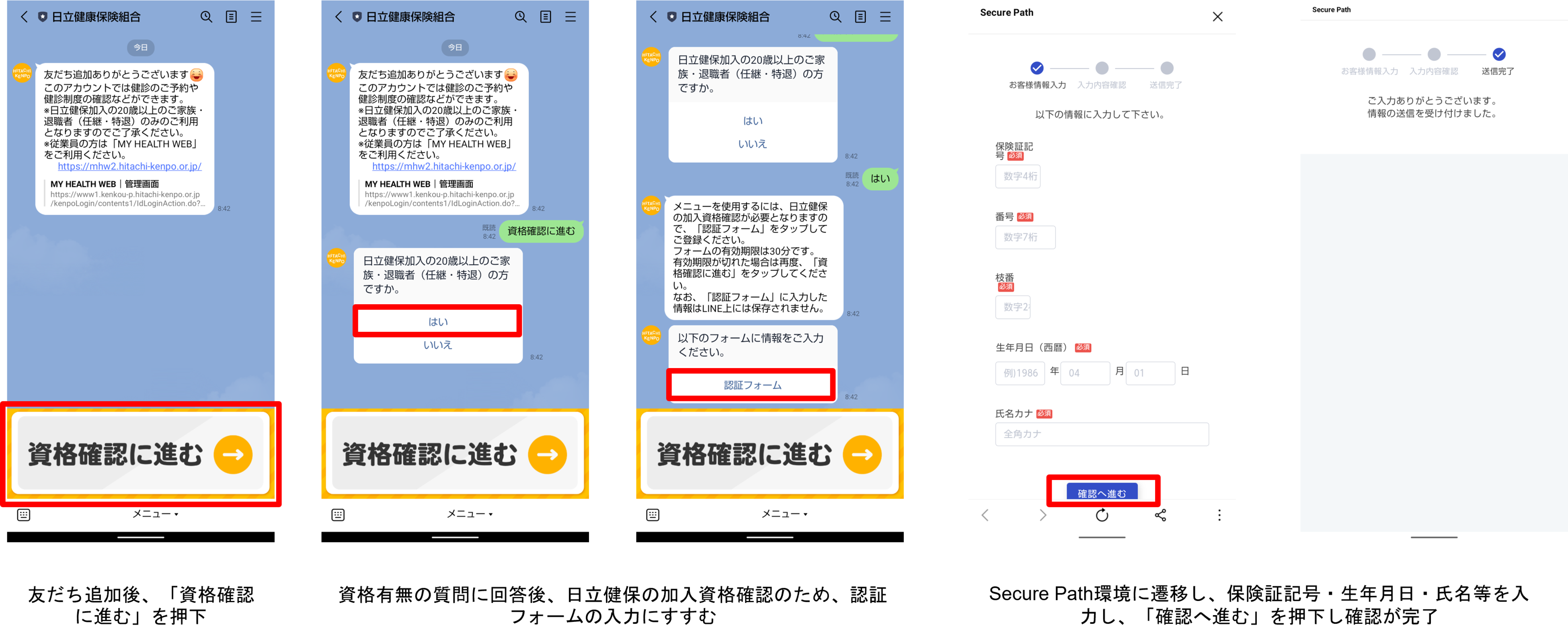 日立健保の情報システムとLINEユーザーIDの紐づけ・内容確認後、情報連携され、
