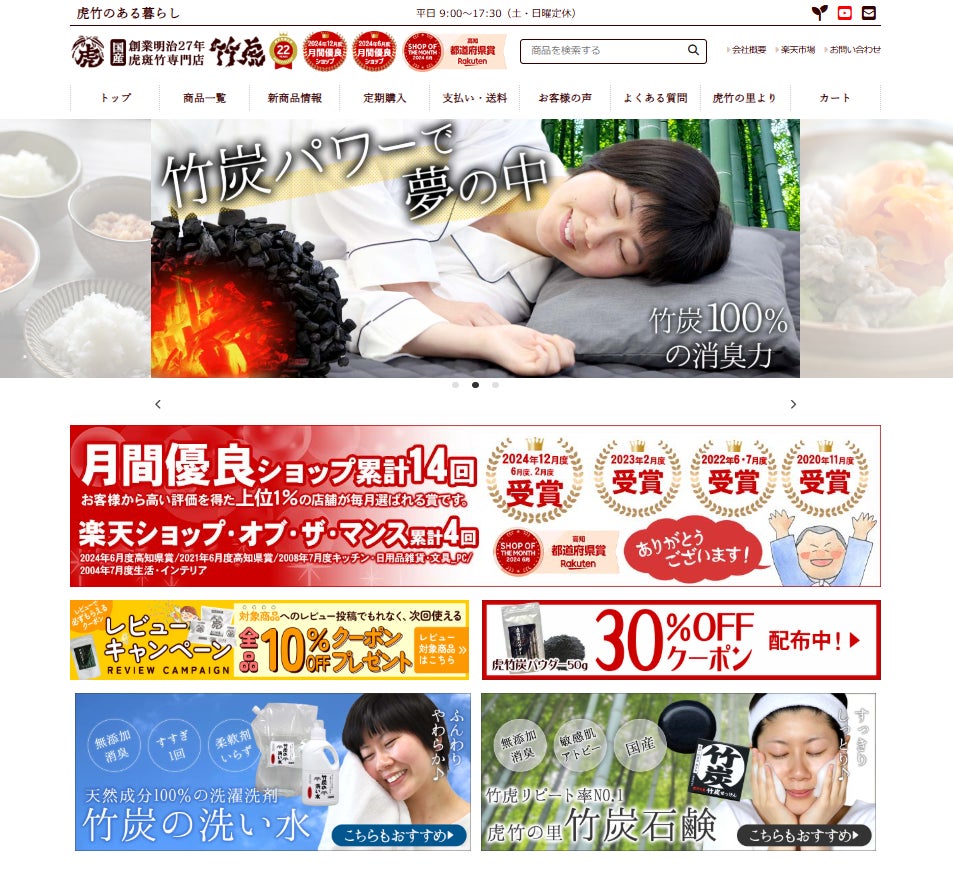 今回の、楽天ショップ・オブ・ザ・イヤー2024「特別賞 サステナビリティ賞」の受賞を社員一同、心より喜んでいます。受賞の喜びを胸に、これからも「虎竹のある暮らし」をお届けするために、さらに努力を重ねていきます。