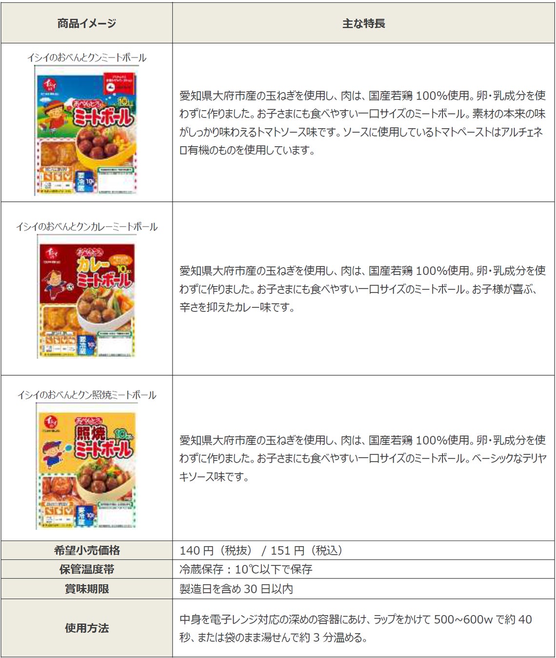 大府市産玉ねぎを使った『イシイのおべんとクンミートボール』商品概要