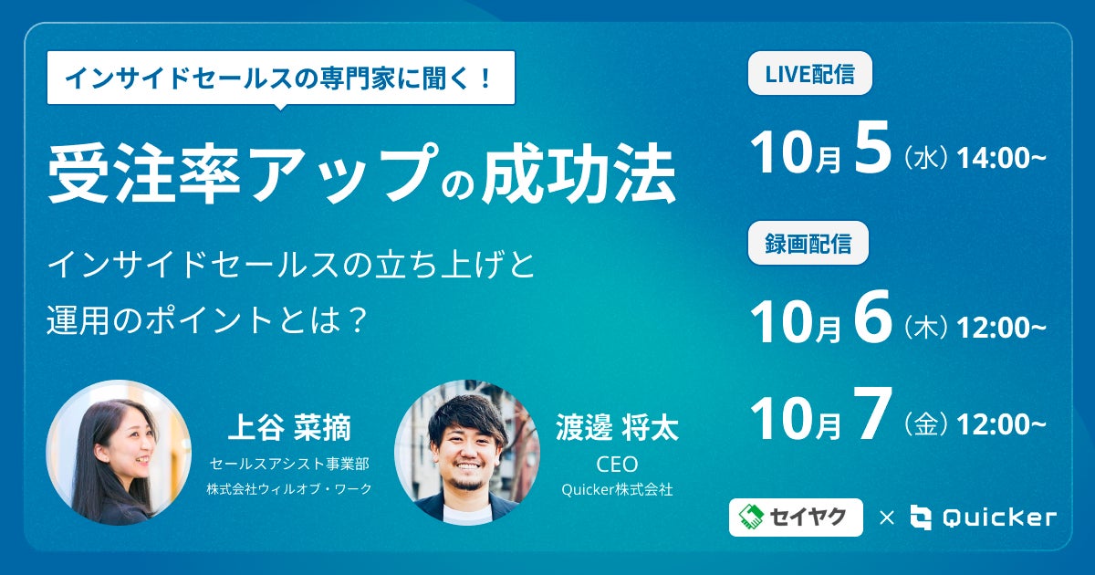 | プログラム | ・オープニングトーク ・受注率アップの成功法 〜インサイドセールスの立ち上げと運用のポイントとは?〜 ・パネルディスカッション&質疑応答 |