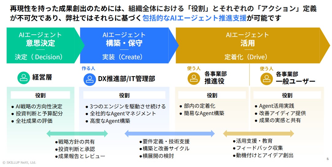 AIエージェントを「現場で活きる力」に変えるためのトータル支援を提供しています。